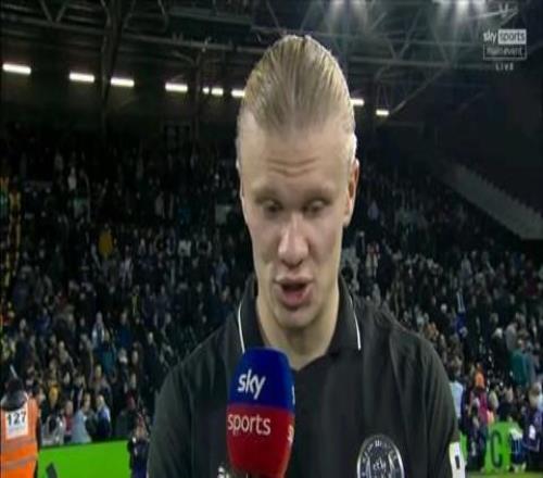 曼城在英超第14轮客场5-4险胜富勒姆。赛后,收获英超百球的哈兰德接受了天空体育的采访。